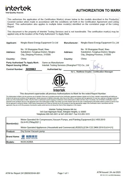 Ningbo Baosi Energy Equipment Co., Ltd. 인증